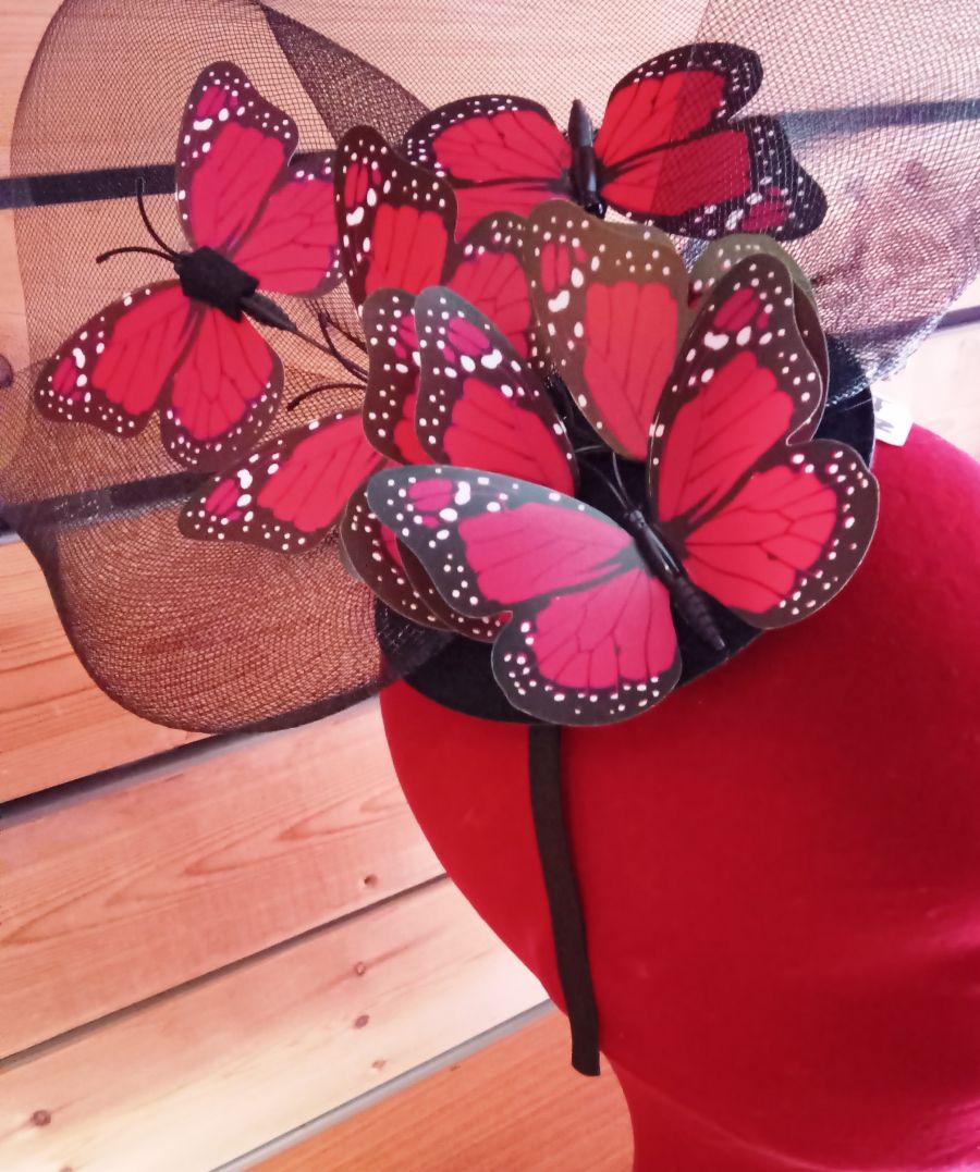 Στέκα-καπελάκι διακοσμημένο με οργάντζα και πεταλούδες.Διαθέτει πιαστράκι και μπορεί να φορεθεί ανεξάρτητα η’ με τη στέκα.
