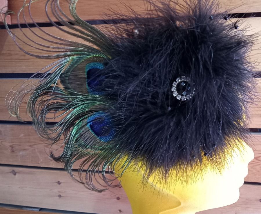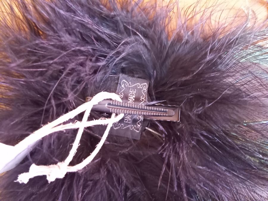 πουπουλένιο διακοσμημένο με φτερά παγωνιού.Εφαρμόζει στα μαλλιά με τσιμπιδάκι σε όποια πλευρά-σημείο θέλετε