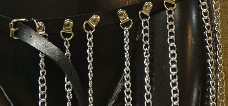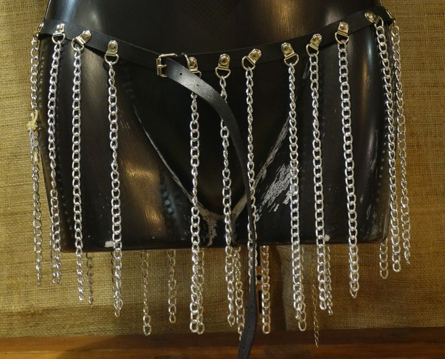 Δερμάτινη ζώνη σαν βάση και αλυσίδες μαύρο-ασημί