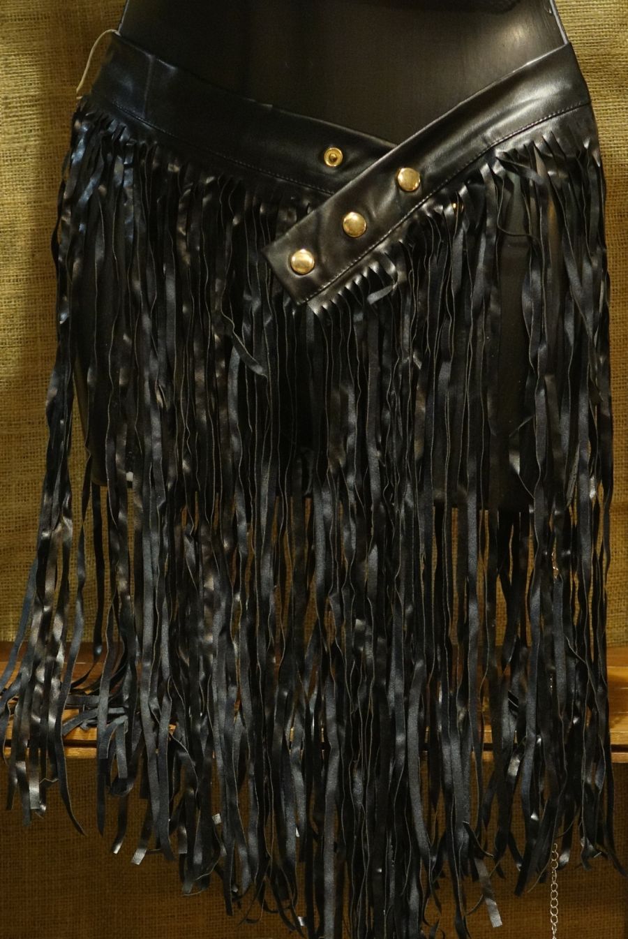 Δερμάτινη ζώνη με μακριά δερμάτινα κρόσια….τρείς ρυθμιζόμενες θέσεις κουμπώματος