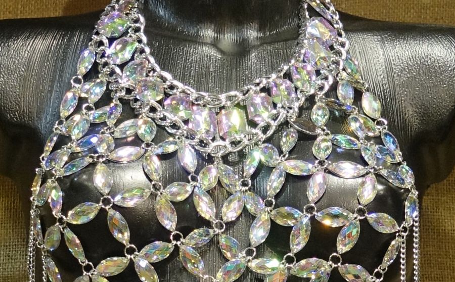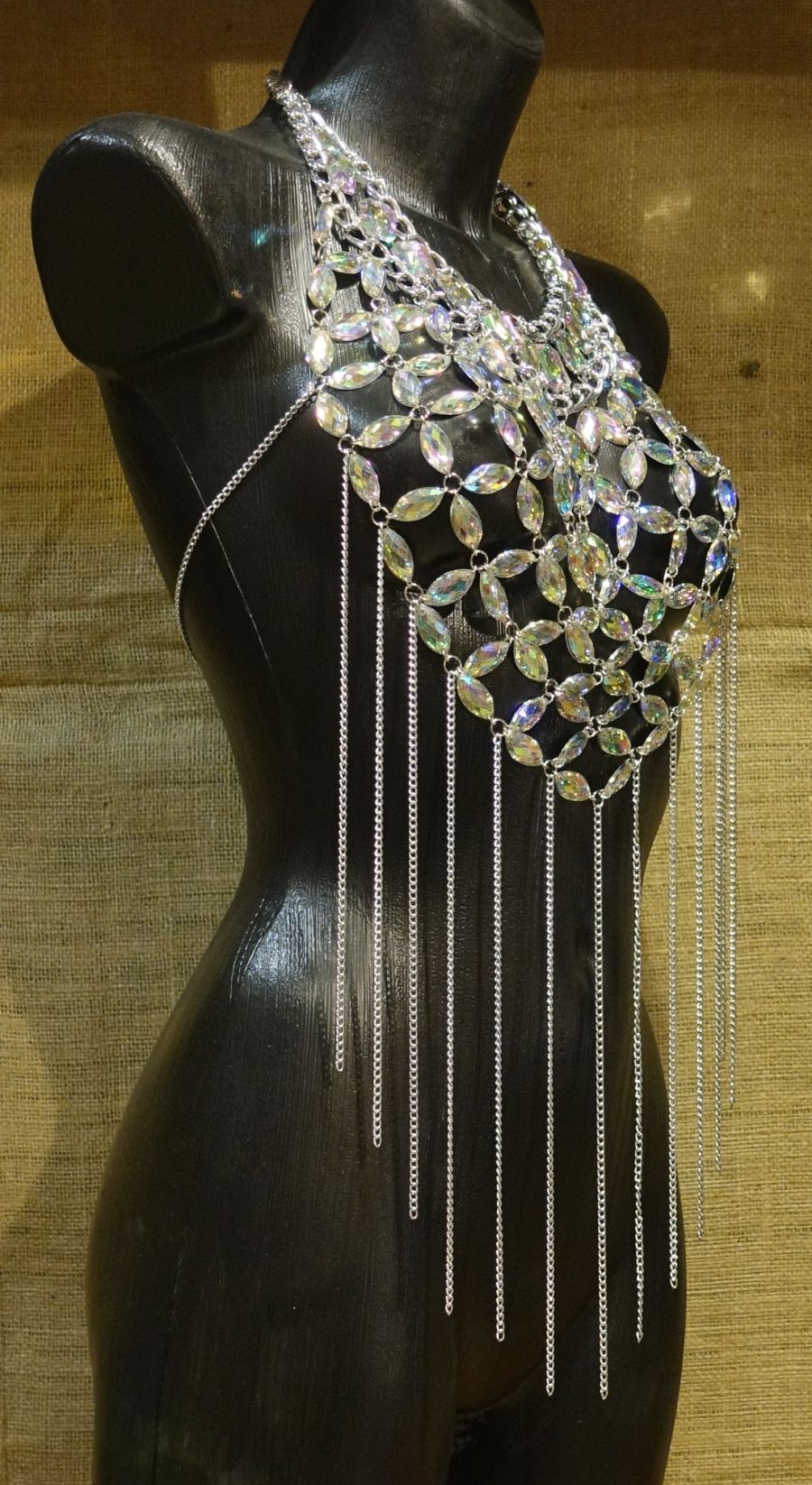 Μπουστάκι αλυσίδα και ακρυλικές πέτρες…...εκτός από σκέτο φοριέται με μαγιό η’ πάνω από μονόχρωμη εφαρμοστή μπλούζα….έξτρα αλυσίδα για άνεση στο κούμπωμα…