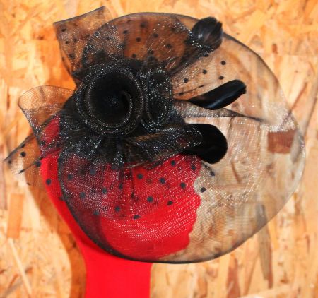 Καπέλο διακοσμημένο με οργάντζα και φτερά.Φοριέται από όποια πλευρά θέλετε μιάς και διαθέτει δύο πιαστράκια που πιάνουν στα μαλλιά.