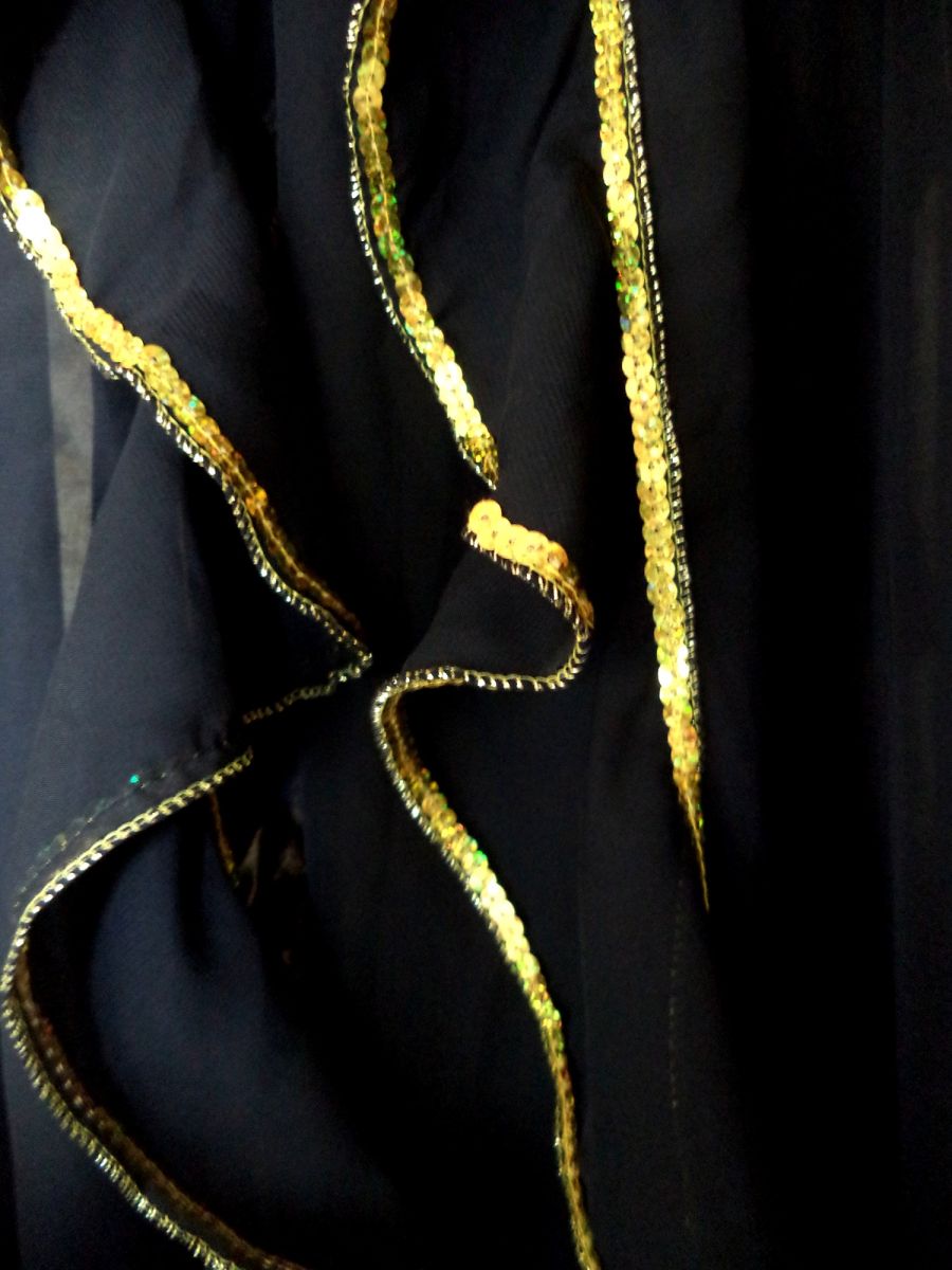 Πολυεστερική Μαύρη φούστα …πολύ πλούσια με πολλές πτυχώσεις....φινίρισμα με χρυσές πούλιες....…και για μεγάλα μεγέθη