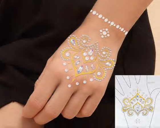 καρτέλα με Αυτοκόλλητα γιά το χέρι .....εφαρμόζετε σε καθαρή επιφάνεια....όσο καθαρότερη είναι η επιφάνεια εφαρμογής τόσο περισσότερο θα αντέξει η κόλλα για πολλές χρήσεις….όταν αδυνατίσει η κόλλα μπορείτε  να καθαρίσετε τα υπολείμματα  με οινόπνευμα  και να το ξαναχρησιμοποιήσετε με κόλλα βλεφαρίδων...