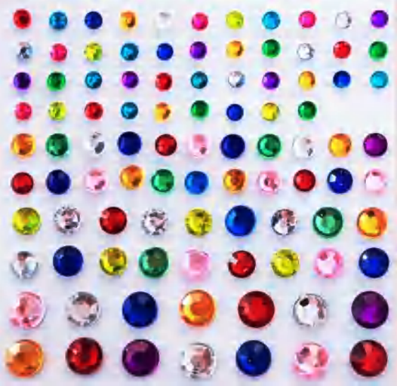καρτέλα με Αυτοκόλλητα πετράδια διαφόρων σχεδίων και χρωμμάτων όπως φαίνεται στην κάθε φωτογραφία .....εφαρμόζετε σε καθαρή επιφάνεια....όσο καθαρότερη είναι η επιφάνεια εφαρμογής τόσο περισσότερο θα αντέξει η κόλλα για πολλές χρήσεις….όταν αδυνατίσει η κόλλα μπορείτε  να καθαρίσετε τα υπολείμματα  με οινόπνευμα  και να το ξαναχρησιμοποιήσετε με κόλλα βλεφαρίδων...